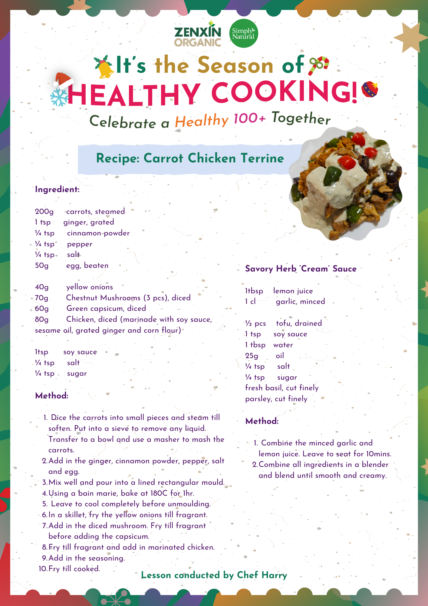 Are you looking for a light yet protein-packed festive dish? Try thisCarrot Chicken Terrine, a colourful and wholesome recipe that’s perfect for any celebration. With its naturally sweet carrots and tender marinated chicken, this terrine offers a delightful balance of taste, nutrition, and texture. Paired with a smooth herb “cream” sauce made from tofu, it feels indulgent without the guilt.