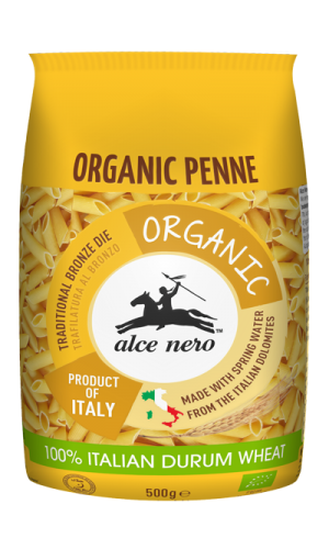 Alce Nero Organic Whole Penne Rigate is made using only whole semolina from organic durum wheat, which comes from milling the whole grain in which has undergone no refinement and features no addictive's. The semolina dough is made with spring water from Dolomites, which gives it an entirely unique flavour. Alce Nero organic whole durum wheat pasta is a source of fibre which is sure to leave you feeling full for longer and which also helps to keep the intestine functioning as it should. That is why it's the right choice for people following a healthy, balanced diet.