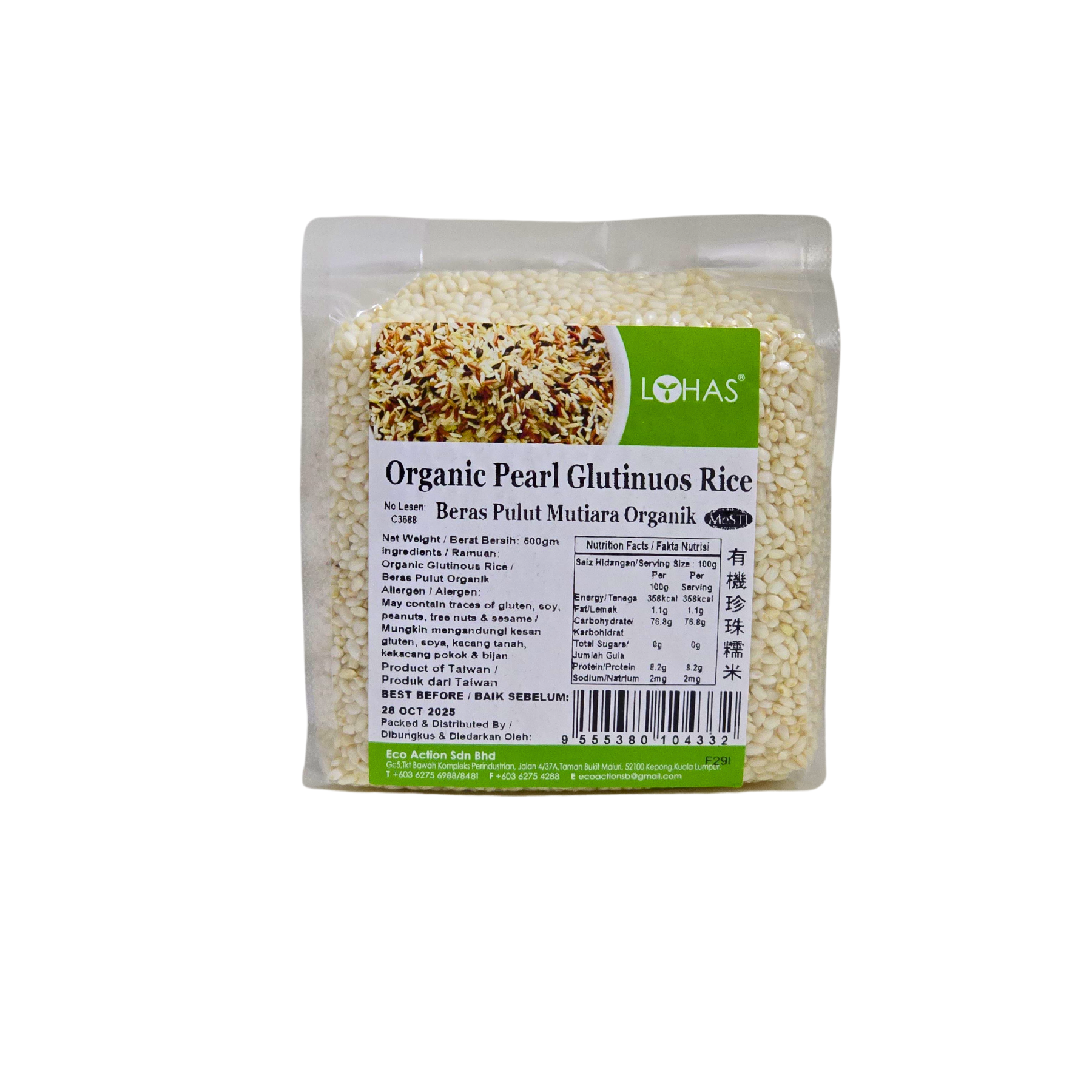 Lohas Organic Pearl Glutinous White Rice 500g